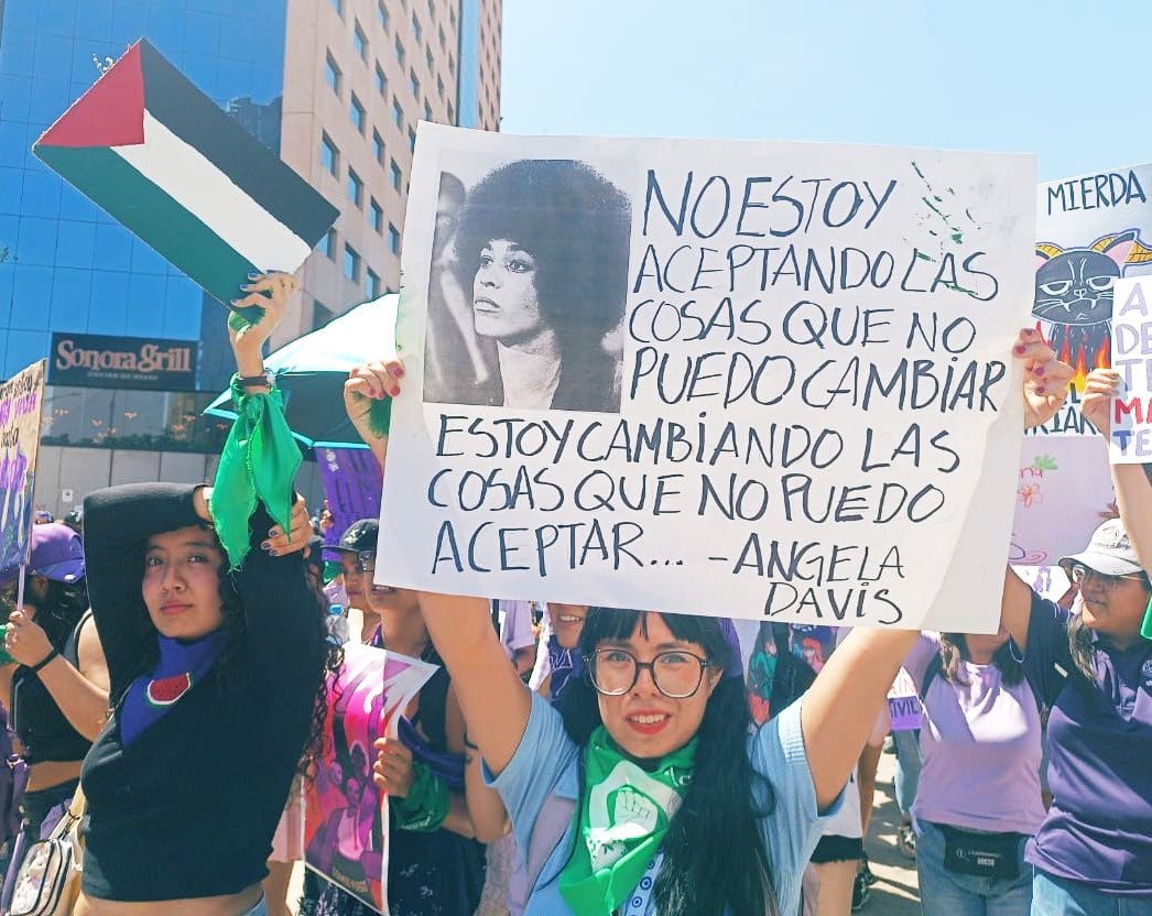 - Angela Davis citada em protesto pelo #8M no México. Créditos: VIM_Media, CapitalMexico e Sandra Rojas