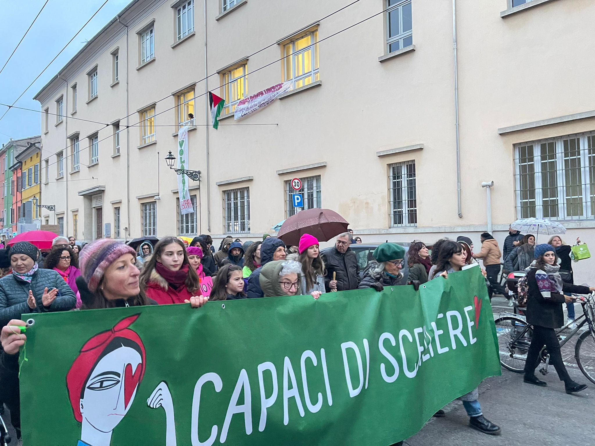 - Em Parma, Itália, o #8M pautou a legalização do aborto com o mote ‘Capazes de Escolher’. Foto: Danyela Castro
