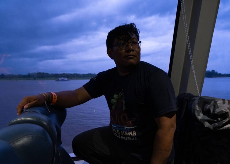 Depois do almoço, seguimos para o porto para continuar viajando pelas lagoas e rios desses territórios. Chegamos à praia Muyuna — ou Ilha Bonita —, onde realizamos uma ação de solidariedade com o Brasil. Ontem soubemos que foi concedida uma licença de exploração de petróleo no mar para a Petrobras. É muito forte e doloroso que, no meio da flotilha, essas coisas ainda aconteçam, mas, pelo menos, estamos juntos para nos apoiar entre territórios.