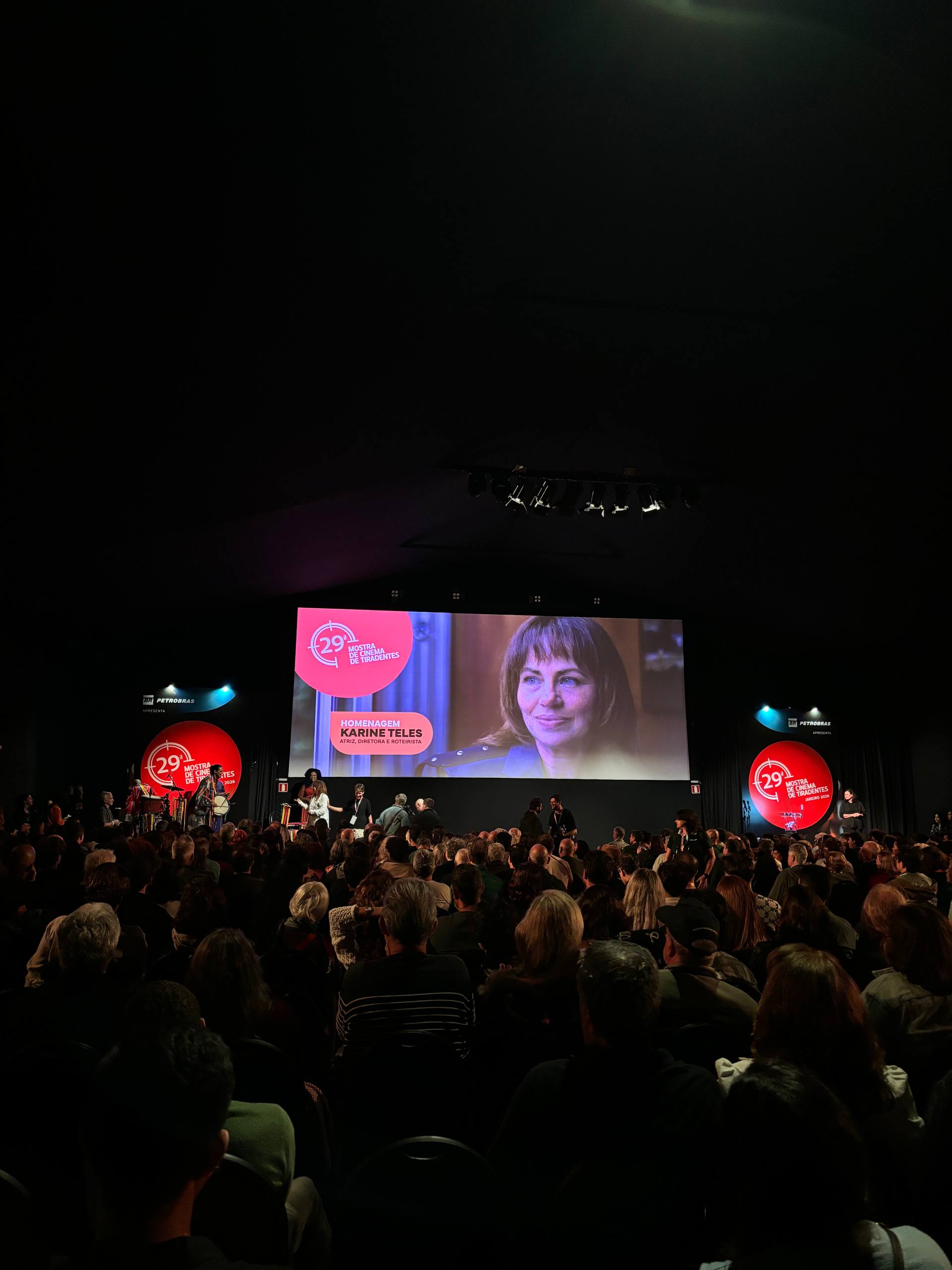 A noite também foi marcada pela homenagem à atriz, roteirista e diretora Karine Teles, figura central da edição. Visivelmente emocionada, Karine agradeceu o reconhecimento e destacou os desafios estruturais do fazer cultural no Brasil. Em seu discurso, ela ressaltou a instabilidade que atravessa as carreiras artísticas no país, marcadas por ciclos de incerteza, descontinuidade de políticas públicas e falta de garantias.