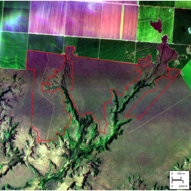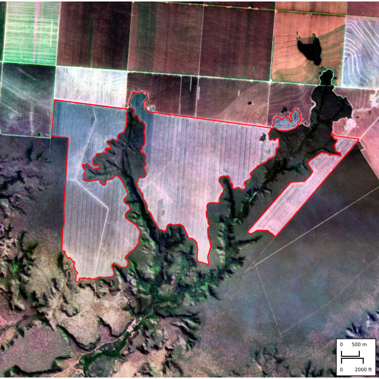 Cem por cento¹³ dos 3,4 mil hectares¹⁴ do território indígena Vão do Vico, reconhecido como comunidade tradicional pelo Instituto de Terras do Piauí (Interpi), são declarados pela Damha Agronegócios como a fazenda Esmeralda¹⁵, arrendada pela Insolo.