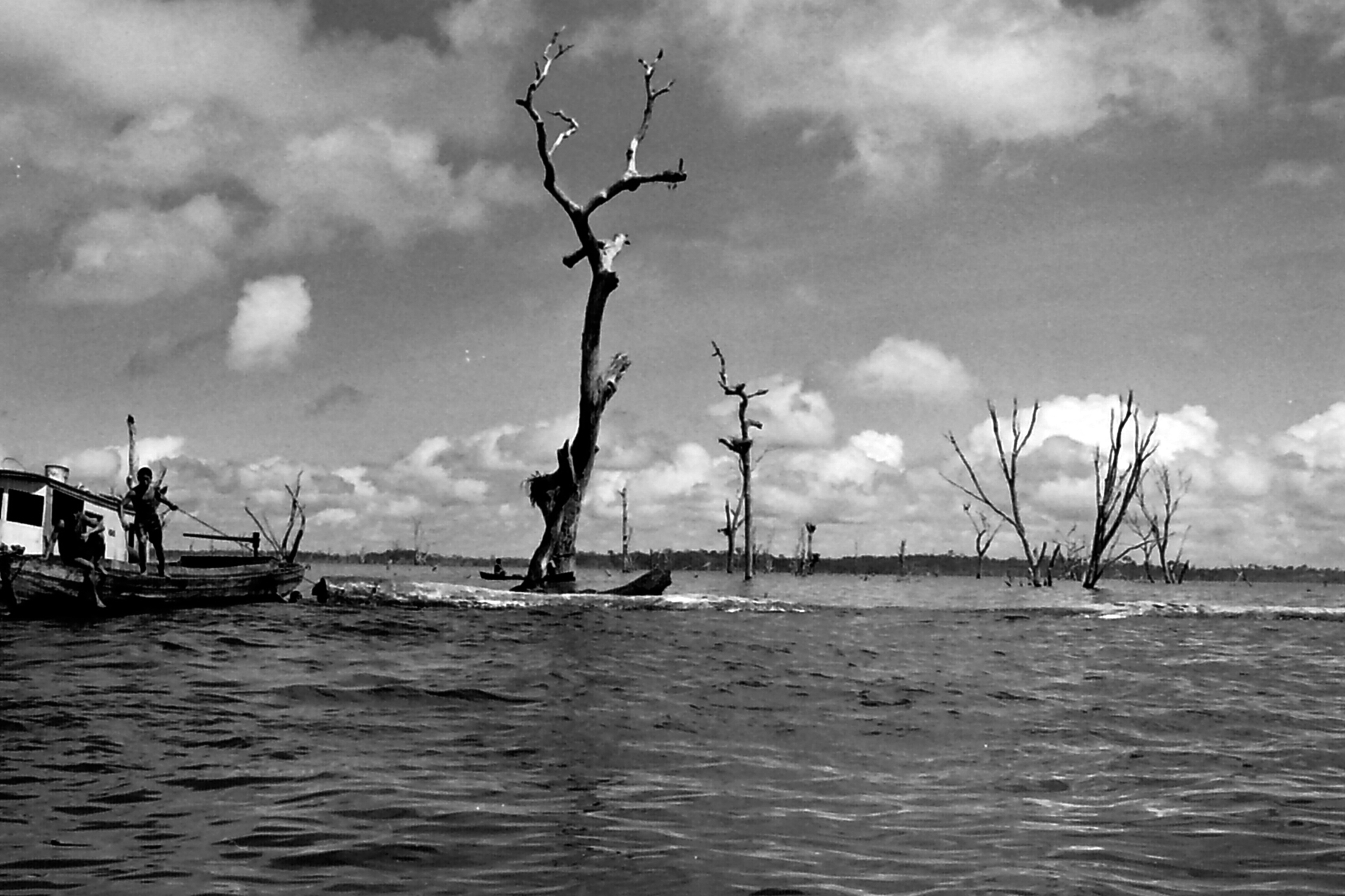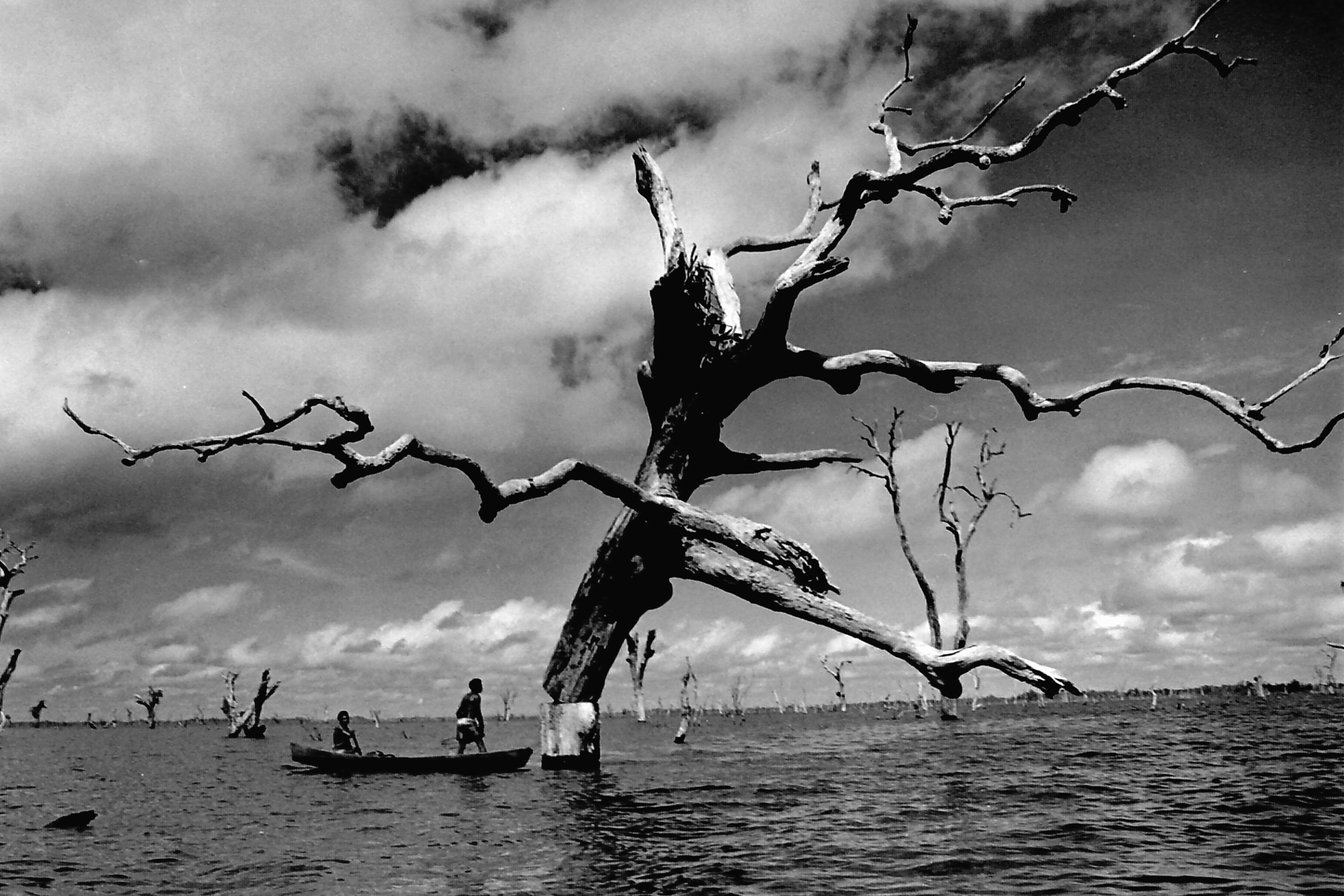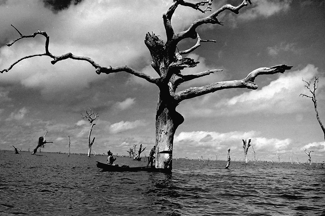 Não é de hoje que os povos tradicionais são ameaçados por grandes empreendimentos. O lago de Tucuruí, no Pará, foi criado para a construção de uma hidrelétrica, matando diversos animais e tirando a casa de cerca de 3 mil pessoas. A fotógrafa Elza Lima, que registra o cotidiano dos povos dos rios e das florestas da Amazônia há quase 40 anos, registrou com seu olhar esse lago, criado de forma artificial, e que mudou o ecossistema desse trecho do rio Tocantins, que foi desviado para a construção da hidrelétrica, que é a segunda maior do Brasil, atrás somente de Belo Monte.