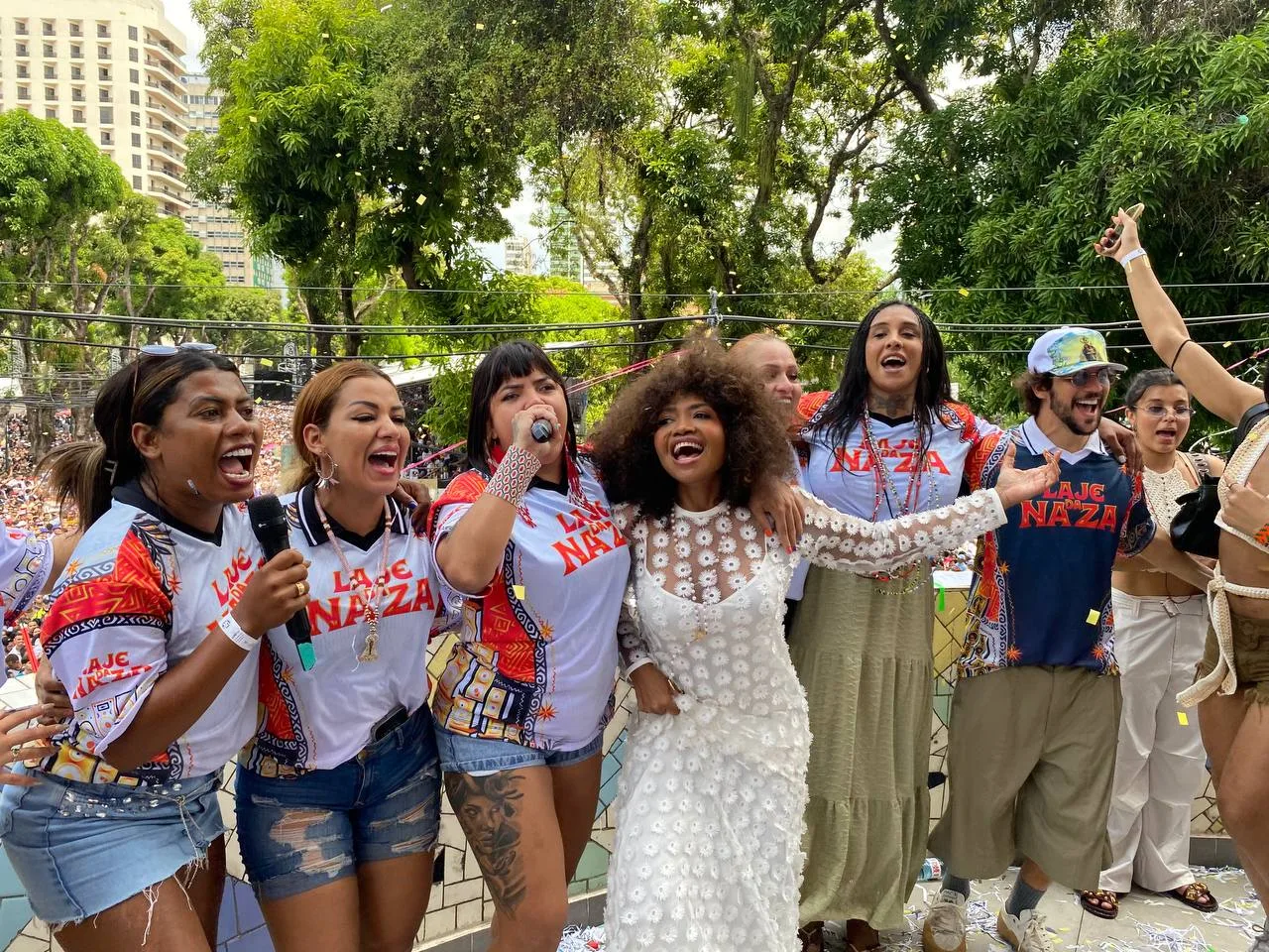 “Marcando presença na Laje da Naza, junto com a Gaby, junto das embaixadoras, porque a gente representa fortemente a periferia com muito orgulho. A periferia neste lugar de poder, no lugar de assistir ao Círio de Nazaré de cima — um lugar que por muito tempo nos foi negado, por muito tempo foi um lugar distante para que nós estivéssemos presentes.”