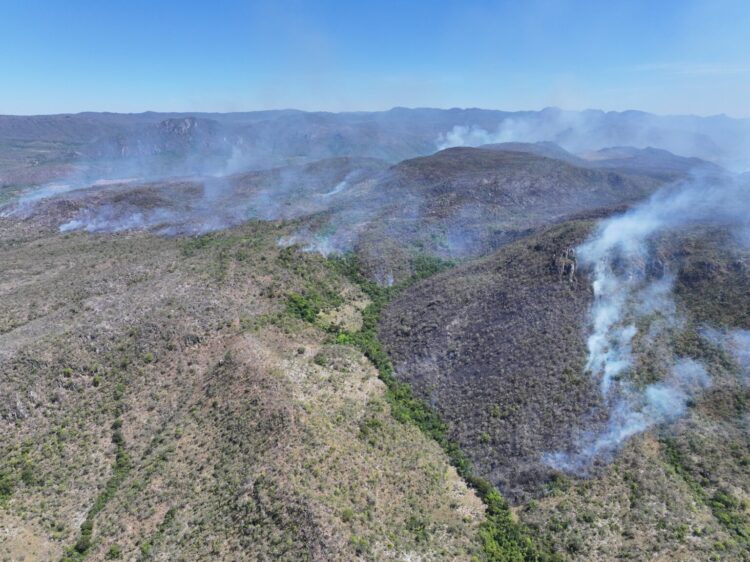 Entre junho e setembro de 2025, a vegetação do Cerrado transformou-se em combustível pronto para o fogo. Segundo o Instituto Chico Mendes de Conservação da Biodiversidade (ICMBio), somente no Parque da Chapada dos Veadeiros (GO), a estimativa é que 110 mil hectares foram tomados por incêndios que duraram 21 dias3.  A combinação entre estiagem prolongada, vegetação altamente inflamável e ações humanas – como a limpeza de terrenos com fogo e o avanço do desmatamento – vem reproduzindo, ano após ano, um cenário explosivo.