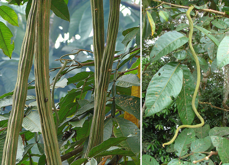 No período de frutificação, porém, a ingazeira faz muito mais. Sua polpa, macia e nutritiva, envolve as sementes dentro de vagens longas e resistentes. Durante semanas, um espetáculo deslumbrante se repete diariamente. Primeiro, chegam os bandos de aves bicudas — maritacas, papagaios, araras, tucanos. São a vanguarda da trituração: alimentam-se, estraçalham as vagens e deixam sobras no chão. Depois vêm as aves menores, as formigas, os micos durante o dia e, à noite, os saruês.