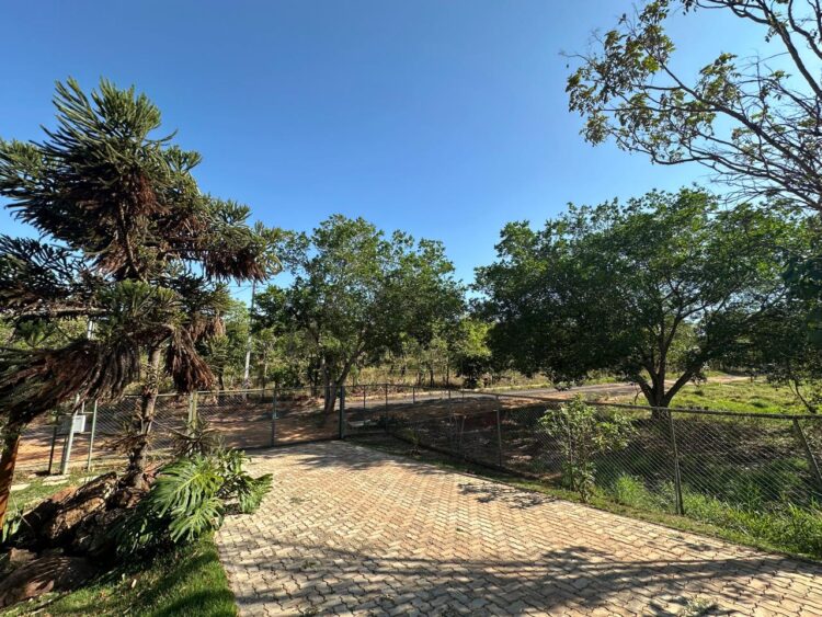 Quando cheguei aqui, ainda não havia terrenos ocupados neste trecho da rua, e pude escolher o meu. O perfil é barrancoso e pedregoso, descendo cerca de dez metros entre o fundo e a frente. Os terrenos vizinhos, no nível da rua, mantêm a vegetação rasteira aparada, para evitar que queimadas na seca atinjam o cerrado aberto ao fundo.