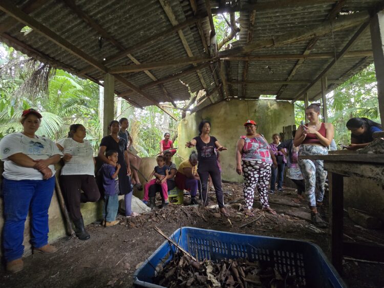 Mulheres da Barra do Turvo em mutirão para o manejo dos cultivos nos quintais e nos sistemas agroflorestais. Foto: Bruna Massis